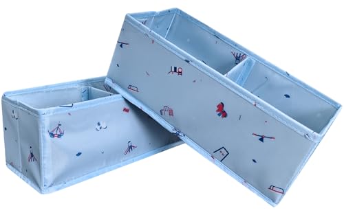 IHOMAGIC 2Pcs Pliable Boite de Rangement sous Vetement, Organisateur Tiroir Vetement avec Motifs Amusants, Boite Rangement Tissu Multifonctionnel pour Sous-vêtements, Chaussettes, Cravates, Bleu