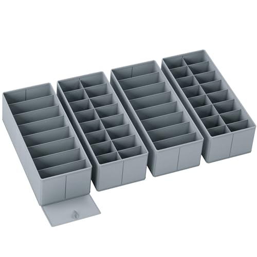 DIMJ Rangement Sous Vetement - Séparateurs de Tiroir Non Tissés, Boîte Organisateur Dressing Rangement Gain de Place Pour Chaussettes, Cravates, 4 Pièces(Gris Moyen)