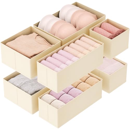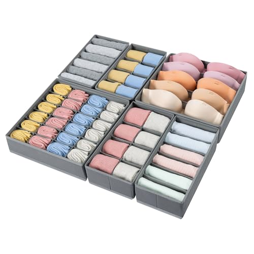 DIMJ Boite Rangement de Non-tissé, Lot de 7 Organisateur Tiroir Pliable et Respirant, Rangement Sous Vetement Ideal Pour Soutiens-Gorge, Chausettes, Gris Clair