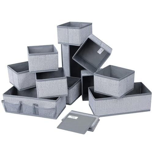 Rangement Sous Vetement, Boites de Rangement, Boite Organisateur Tiroir, Organiseurs de tiroir Pliable et Respirant, Ouvertes de Organisateur Armoire Vetement pour Cravates Chaussettes (12Pcs-Gris)