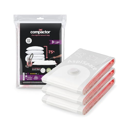 Compactor - Lot de 3 sacs de rangement sous vide – Taille M 90 x 55 cm - Rangement sous vide pour vêtements, couettes et oreillers