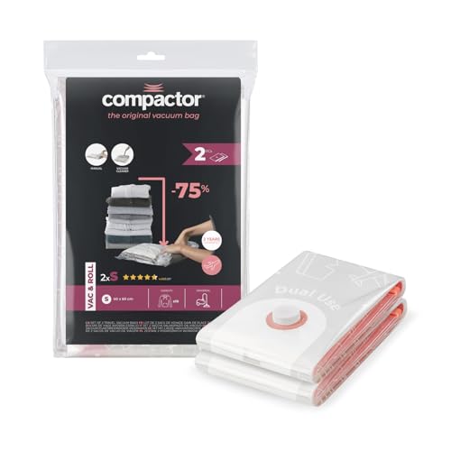 Compactor - Lot de 2 sacs de rangement sous vide de voyage taille S, 50 x 35 cm, sacs sous vide manuels