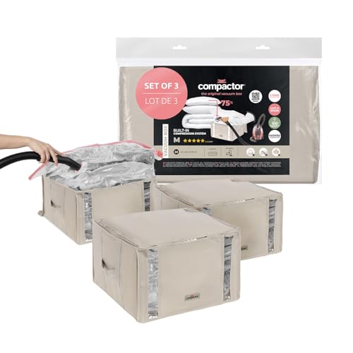 COMPACTOR- Lot de 3 housses de rangement sous vide Taille M - 42 x 40 x H27 cm - Coloris beige - Compression avec aspirateur - Valve brevetée - Grande capacité - Linge protégé