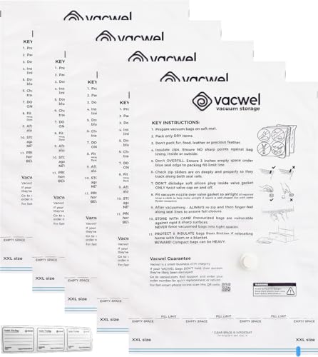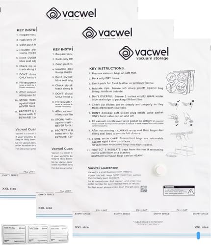 Vacwel Lot de 3 sacs de rangement sous vide XXL pour ranger les vêtements – Couettes XL, surmatelas, 3 sacs XXL (119,4 x 88,9 cm), 1 grand sac (81,3 x 53,3 cm)
