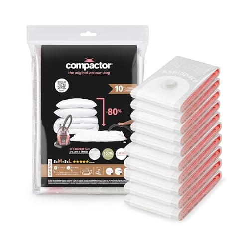Compactor - Lot de 10 sacs de rangement sous vide - Taille M 90 x 55 cm - Rangement sous vide pour vêtements, couettes et oreillers