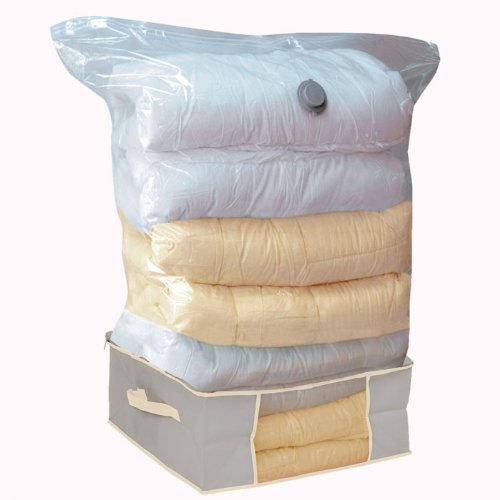 Compactor - Housse de rangement sous vide - Taille XXL très grande capacité - Coloris beige - Compression couettes oreillers vêtements - Rangement armoire