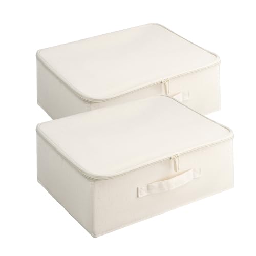 2 pièces Boite de rangement avec couvercle, Grande capacité Pliable Bac de rangement tissus avec poignées et double fermeture éclair, Lavable boite de rangement pour ranger couvertures vêtements