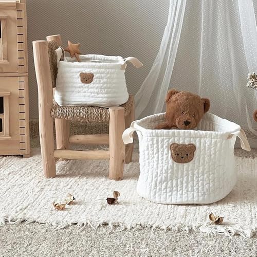 2PCS Panier de Rangement Bebe Organisateur Tissus Pliable Panier Rangement Bébé Ours Corbeille de Rangement Enfant Panier Deco Fille Garcon Chambre