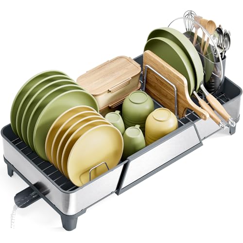 kingrack Grand égouttoir à Vaisselle - Triple égouttoir Extensible pour compteurs de Cuisine, Organisateur d'évier en Acier Inoxydable et Rangement Essentiels avec Vaisselle, Gris