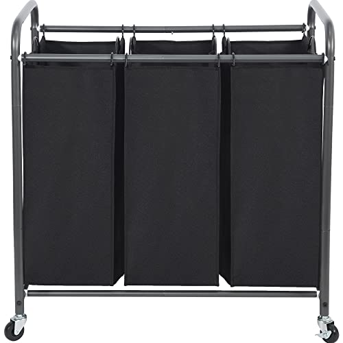 STO STO Trieur à linge à 3 sections, panier à linge à 3 sacs, panier à linge roulant, panier à linge avec roues verrouillables robustes et sac amovible pour le rangement des vêtements, noir