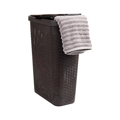 Mind Reader Panier à linge fin de 40 litres, panier à linge avec poignées découpées, bac à linge, rangement de vêtements sales, salle de bain, chambre à coucher, placard, marron