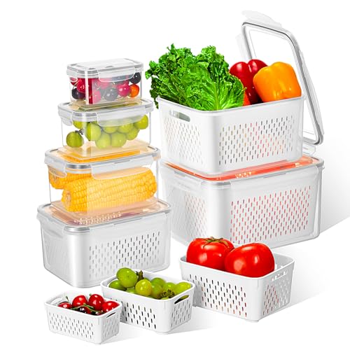 VINATO Lot de 6 Boîte Rangement Frigo, (0.38+0.8+1.7+3.15+4.15+6.2L) Boite avec Passoire pour Fruits Légumes, Adapté au micro-ondes et au lave-vaisselle, Sans BPA