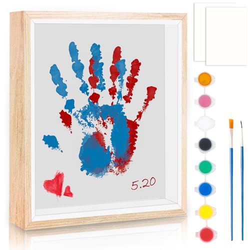 Kit d'empreintes de pied pour bébé - Kit d'empreintes de main de famille - 25,4 cm - En bois - Avec pinceau à pigment 8 couleurs - Papier râpe - Pour fête prénatale et jeunes parents - Cadeau (blanc)