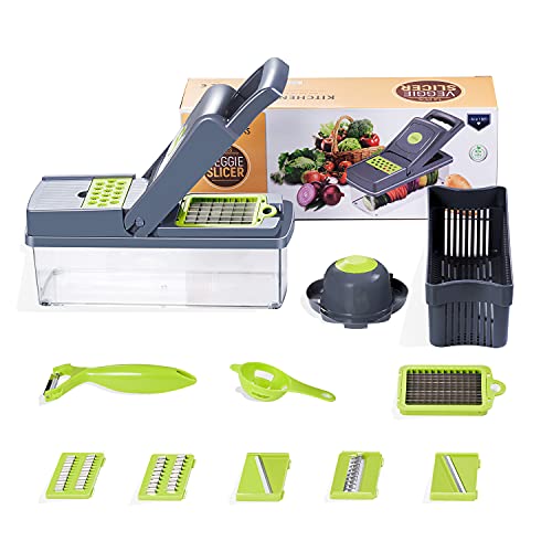 Gourmetmaxx 09896 Multi Hachoir, légumes râpe de Cuisine Mandoline Oignon Schneider, Acier Inoxydable, 8,5 x 8,5 x 22,6 cm Citron Vert/Blanc