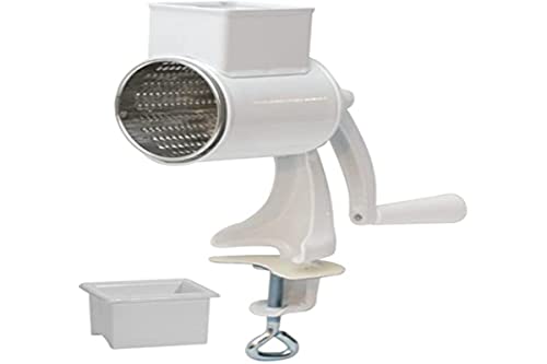 Râpe à Fromage Rotative, Râpe à Fromage Manuelle avec 3 Lames de Tambour Détachables, Râpe à Légumes Facile à Nettoyer pour une Coupe Rapide et Différente (Grey+White)