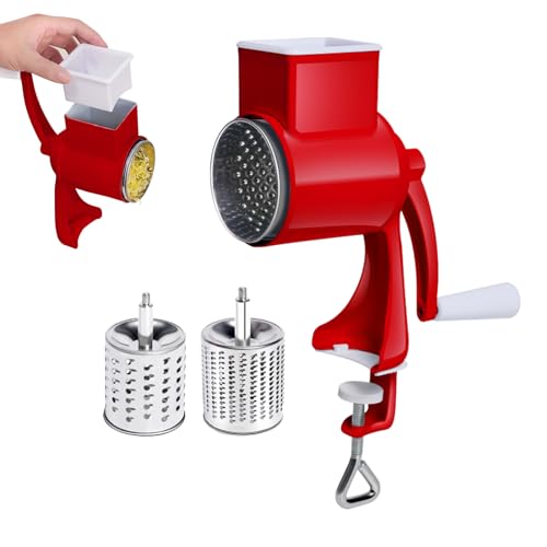 AZIDWERYQ Râpe à Fromage rotative en Acier Inoxydable, à manivelle, avec 2 Lames interchangeables, broyeur Multi-usages pour Gadgets de Cuisine Rotatif