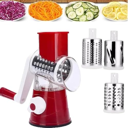 Râpe à Fromage rotative, râpe à Fromage rotative 3 en 1 avec poignée trancheuse à légumes, trancheuse à légumes Ronde Manuelle Peut Facilement râper Le Fromage, Les Carottes et Plus Encore Red