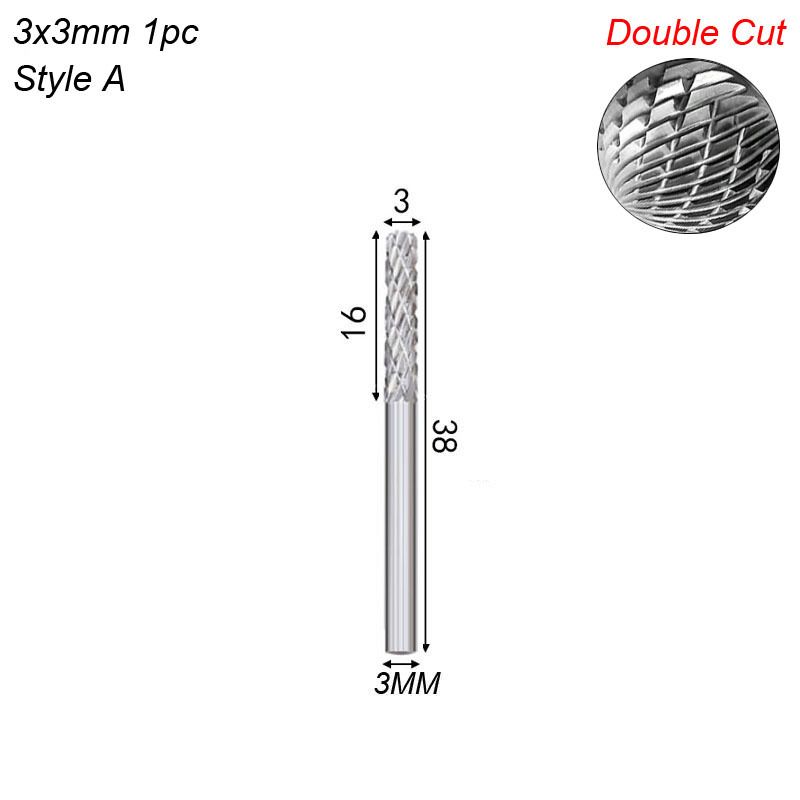 Double Burr A 1pc Fraise de travail en carbure de tungstène, tige de 3mm, 1/8 ", pour sculpture, râpe rotative, lime, diamant, acier, bois et métal ""Nipseyteko