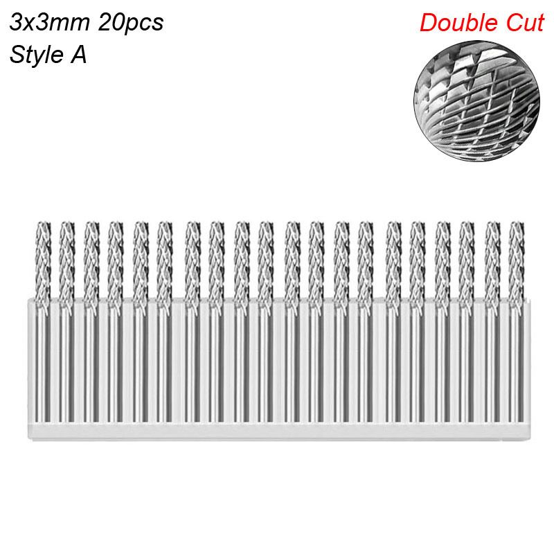 Double Burr A 20pc Fraise de travail en carbure de tungstène, tige de 3mm, 1/8 ", pour sculpture, râpe rotative, lime, diamant, acier, bois et métal ""Nipseyteko