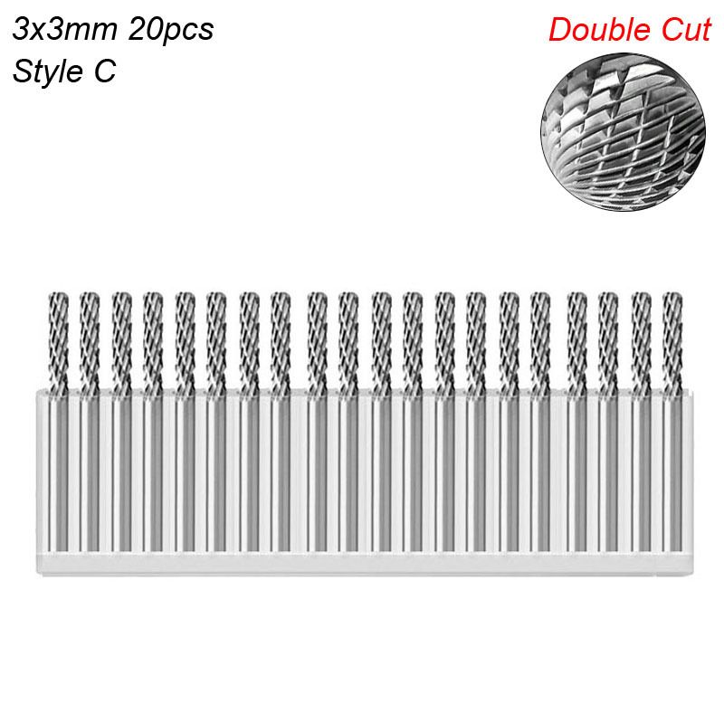 Double Burr C 20pc Fraise de travail en carbure de tungstène, tige de 3mm, 1/8 ", pour sculpture, râpe rotative, lime, diamant, acier, bois et métal ""Nipseyteko