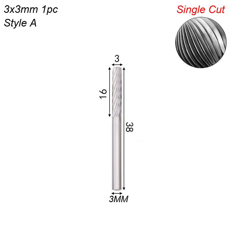 Single Burr A 1pc Fraise de travail en carbure de tungstène, tige de 3mm, 1/8 ", pour sculpture, râpe rotative, lime, diamant, acier, bois et métal ""Nipseyteko