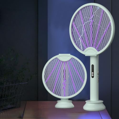 DANGZW Raquette Moustique Electrique, 4800V Raquette Electrique Insectes 2en1 avec Base de Charge USB, Batterie Rechargeable 1800mAh & LED UV, Raquette Anti Moustique Electrique pour Chambre, Camping