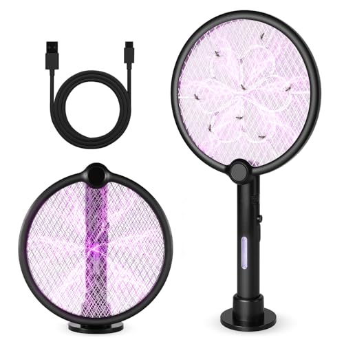 BUZZEAP Raquette Moustique Electrique, Tapetteà Mouche Électrique 4000V, 2 en 1 Tête Rotative Rechargeable Raquette Electrique Insectes, Lampe UV Anti Moustique, Attrape Mouche Tue Mouche, 1200mAh