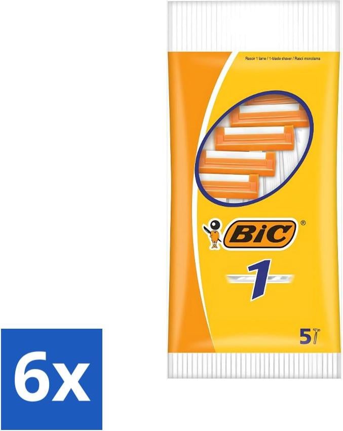 [838517] BIC Pochette de 5 (BIC 1) Rasoir Homme - 1 lame - Peaux normales