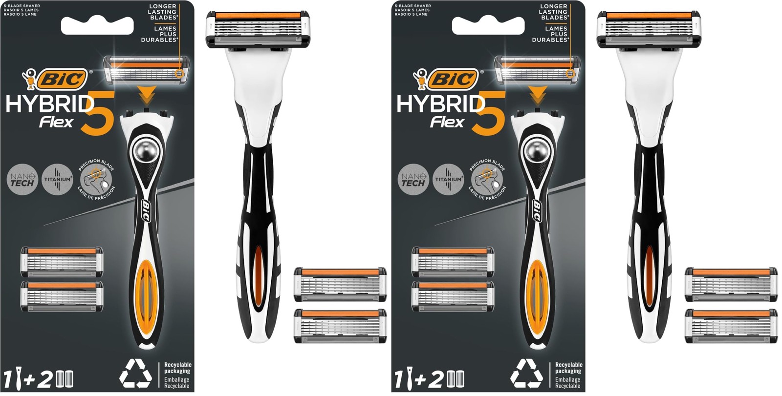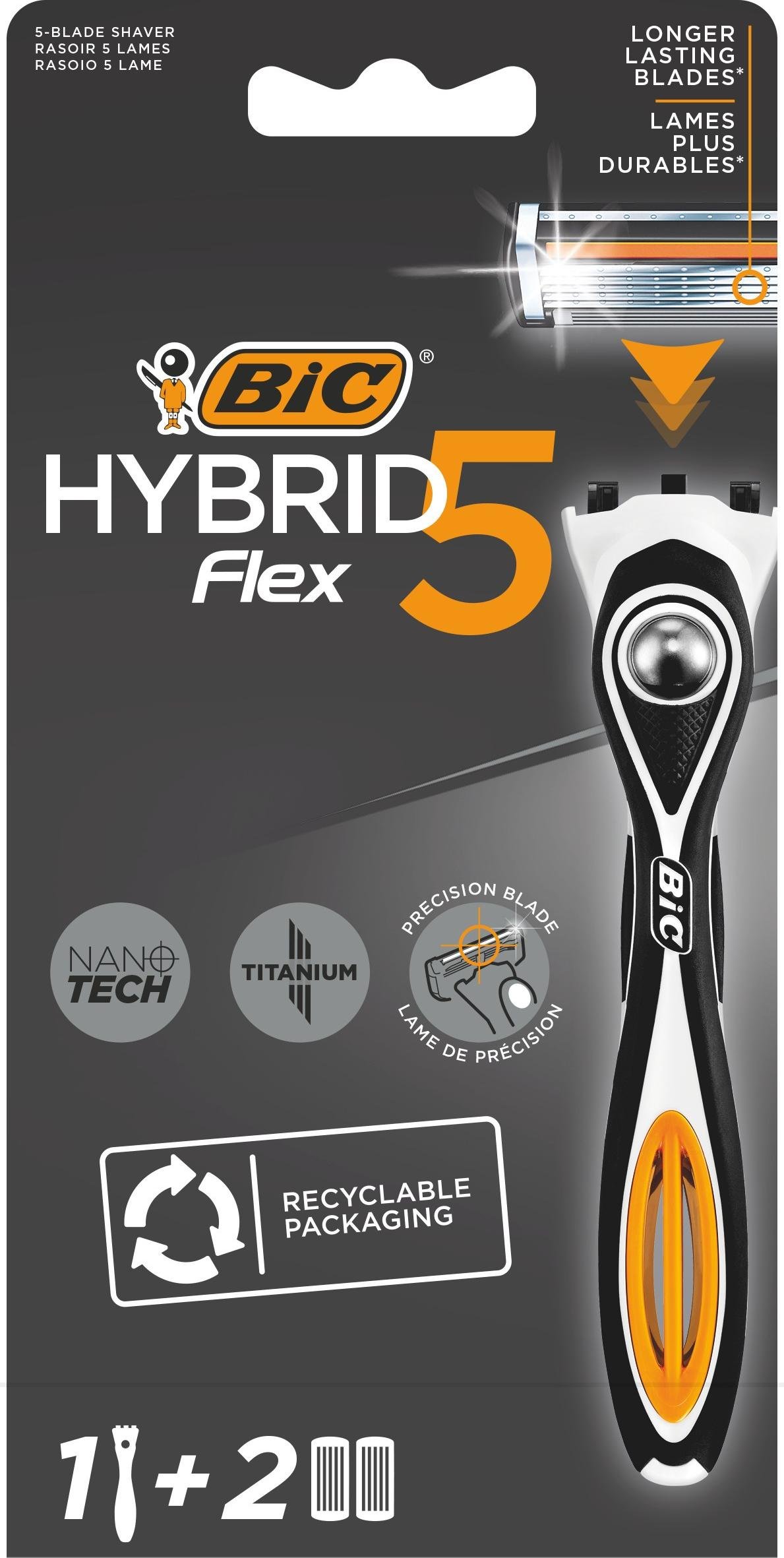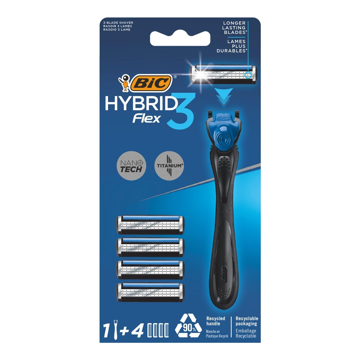 BIC Hybrid 5 Flex Rasoir Rechargeable pour Homme Manche et Recharges 5 Lames en Nanotech Titane - Boîte de 1+3