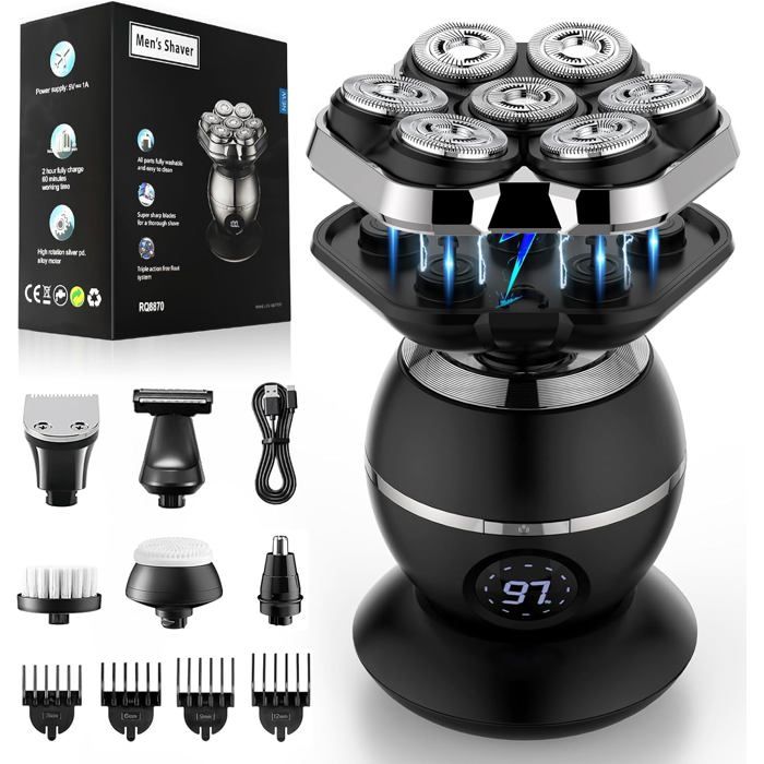 Rasoir électrique pour hommes tête rasoir barbe chauve cheveux crâne tondeuse barbe dissolvant Blanc