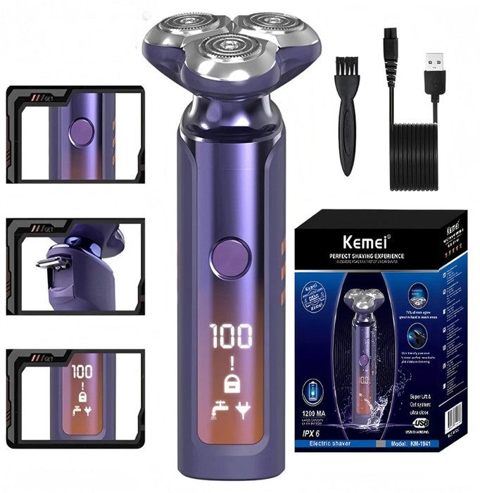 Rasoir Électrique Barbe Shaver Professionnel 3 Lames Rotatives Exposition LED