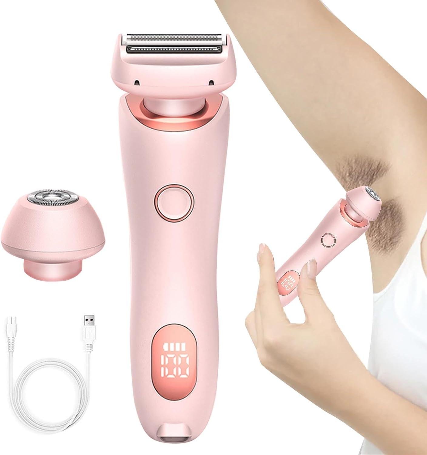 Rasoir Femme, Rasoir Intime Femme 2 en 1 Rasoir électrique étanche, épilateur sans douleur, épilateur sans fil humide/sec