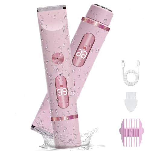 Hatteker Rasoir Electrique Femme Tondeuse Femme Intime Bikini Affichage LED étanche IPX7 3 en 1(rose)