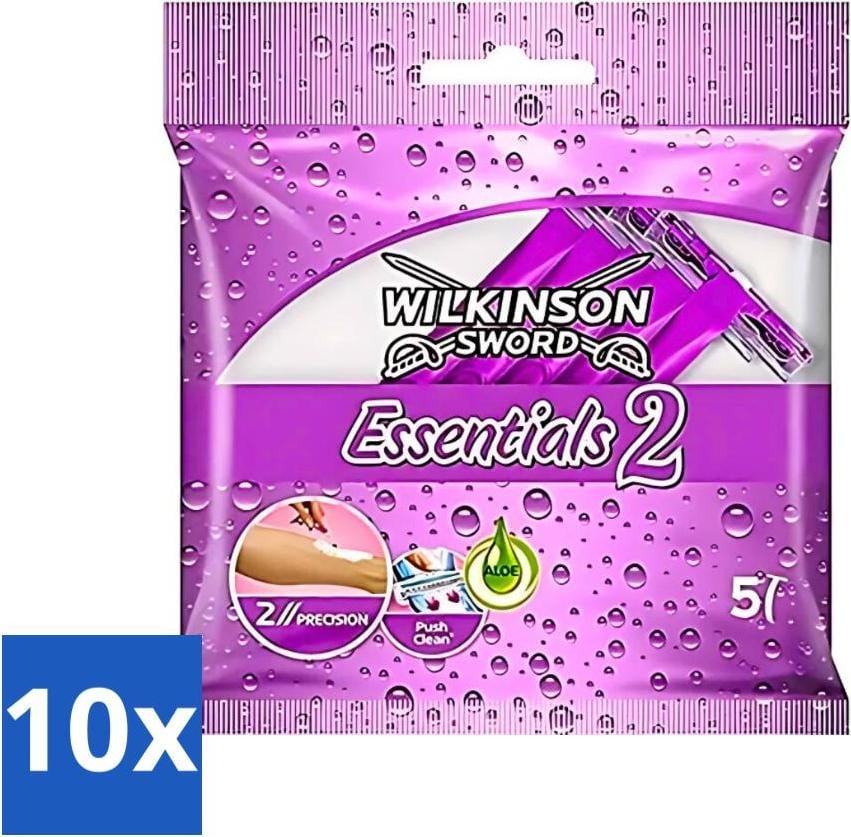 Wilkinson - Rasoirs jetables Essentials 2 - Pour Femmes - Manche antidérapant - 5 lames de rasoir - Pack avantage - 10 pièces