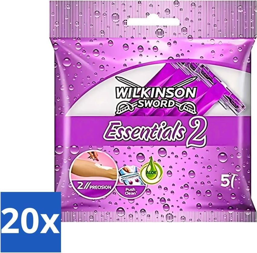 Wilkinson - Rasoirs jetables Essentials 2 - Pour Femmes - Manche antidérapant - 5 lames de rasoir - Pack avantage - 20 pièces