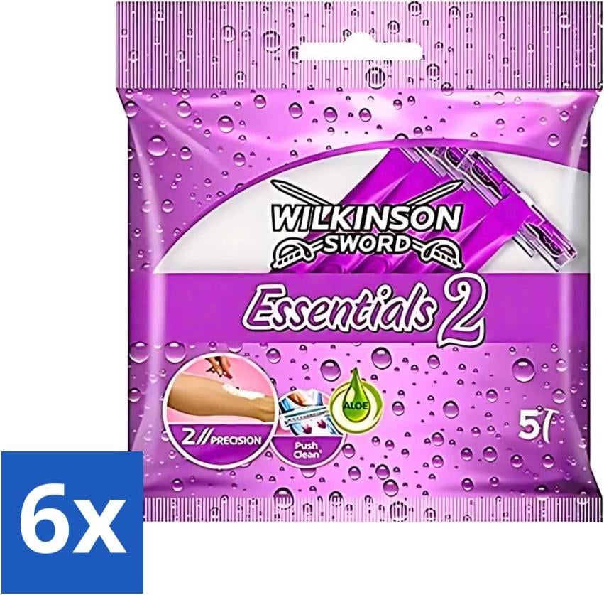 Wilkinson - Rasoirs jetables Essentials 2 - Pour femmes - Manche antidérapant - 5 lames de rasoir - Pack avantage - 6 pièces