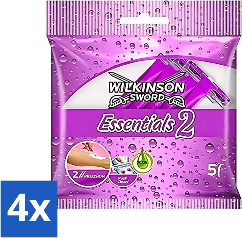 Wilkinson - Rasoirs jetables Essentials 2 - Pour femmes - Manche antidérapant - 5 lames de rasoir - Pack avantage - 4 pièces