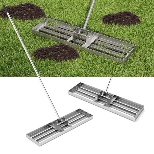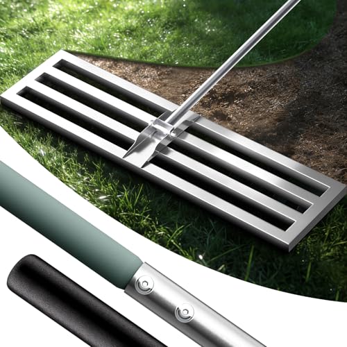 YODOLLA Râteau de Nivellement de Pelouse 75 x 25 cm, Niveleur de Gazon Professionne Outil de Nivellement pour Jardin, Golf - Argent