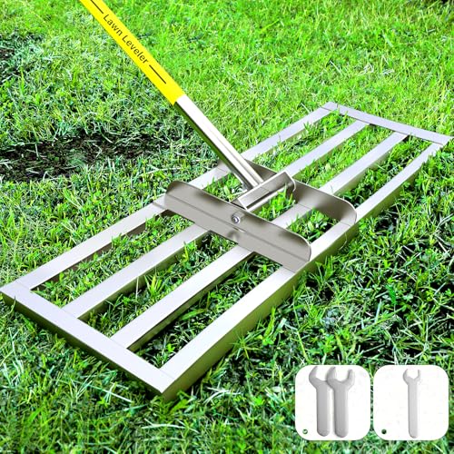 AYNEFY Râteau de Nivellement de Pelouse Robuste avec Poignée en Acier Inoxydable, Outil de qualité Professionnelle pour Jardin, Terrain de Golf, Ferme, Pâturage, 30 X 10 Pouces