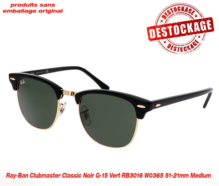 Lunettes de soleil Ray-Ban Clubmaster Classic Noir RB3016 W0365 51-21 Medium verre vert G-15 (produit sans emballage original)