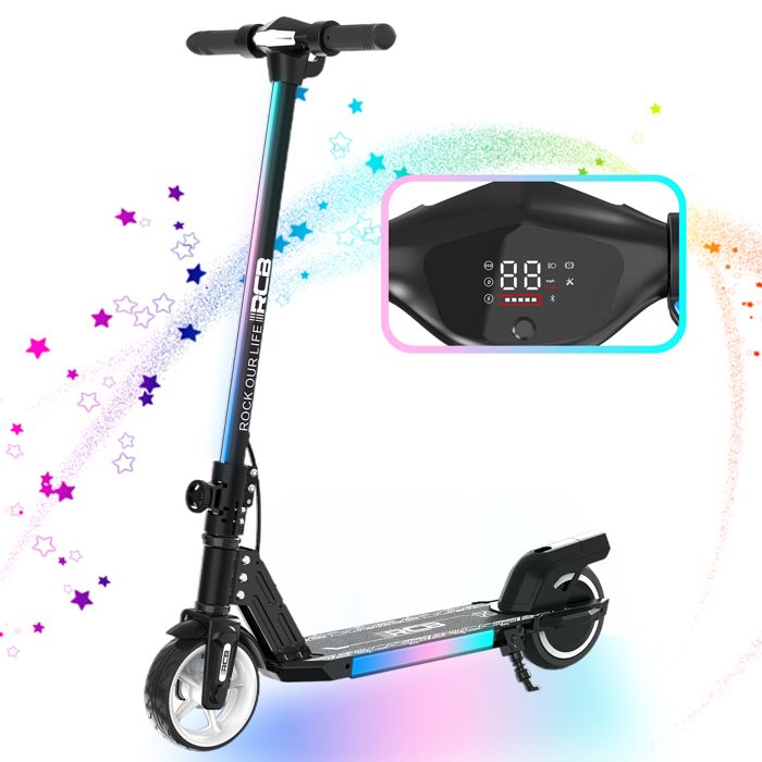 RCB R12 Trottinette Electrique Enfants pliable - Écran numérique - néons colorés - Cadeau Super Noir