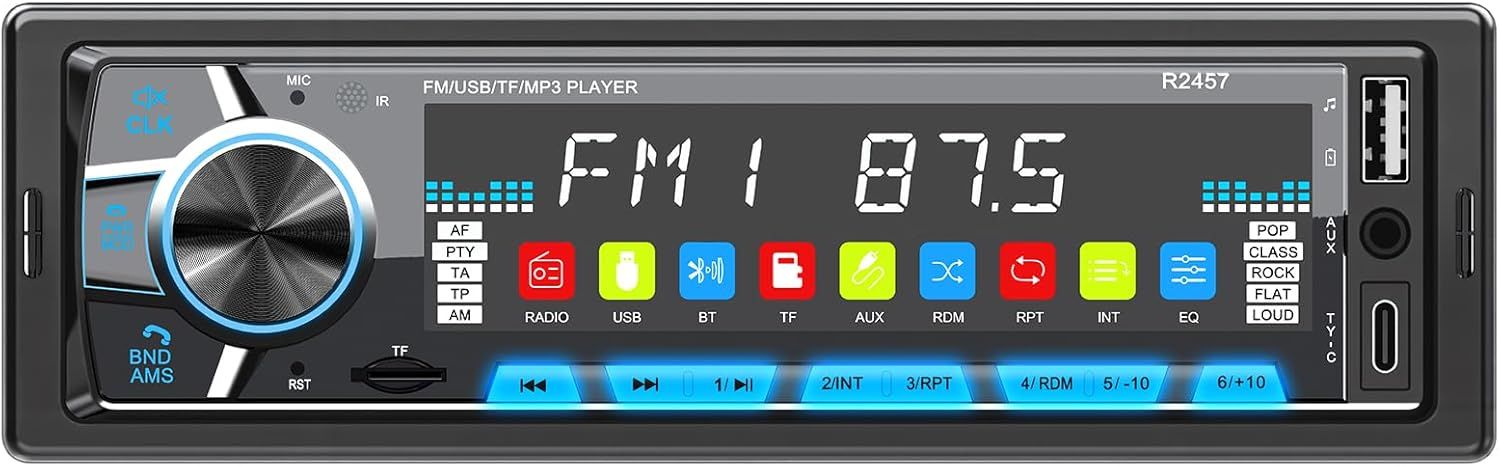 RDS Autoradio Bluetooth avec Port de Charge Type-C, Wistrue FM/AM Autoradio prenant en Charge 2 Ports USB/AUX/SD/TF/EQ, Radio 1 DIN avec Lecteur Mains Libres Bluetooth/MP3