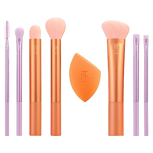 Real Techniques Level Up Brush And Sponge Kit, Makeup Brushes For Eyeshadow, Foundation, Blush, & Bronzer, Makeup Blending Sponge, Professional Quality Makeup Tools, Synthetic Bristles, 8 Piece Set