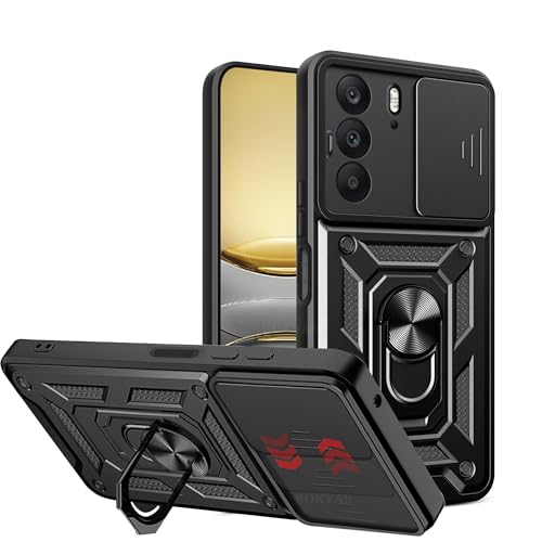 BOKYAS Coque pour Realme C75 4G/Realme 14x 5G avec Cache Webcam & Support Annulaire à 360 Degrés, Anti-Chute Étui Housse Compatible avec Support De Voiture Magnétique, Noir