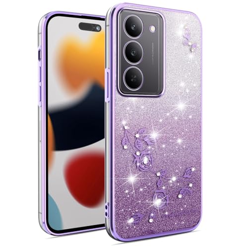 SEAHAI Coque pour Realme 14X 5G / Realme C75 4G, Dégradé de Couleur Élégant en Silicone Souple Brillante Fleur Motifs Design Fille Housse Ultra Mince Antichoc TPU Bumper Étui - Mauve