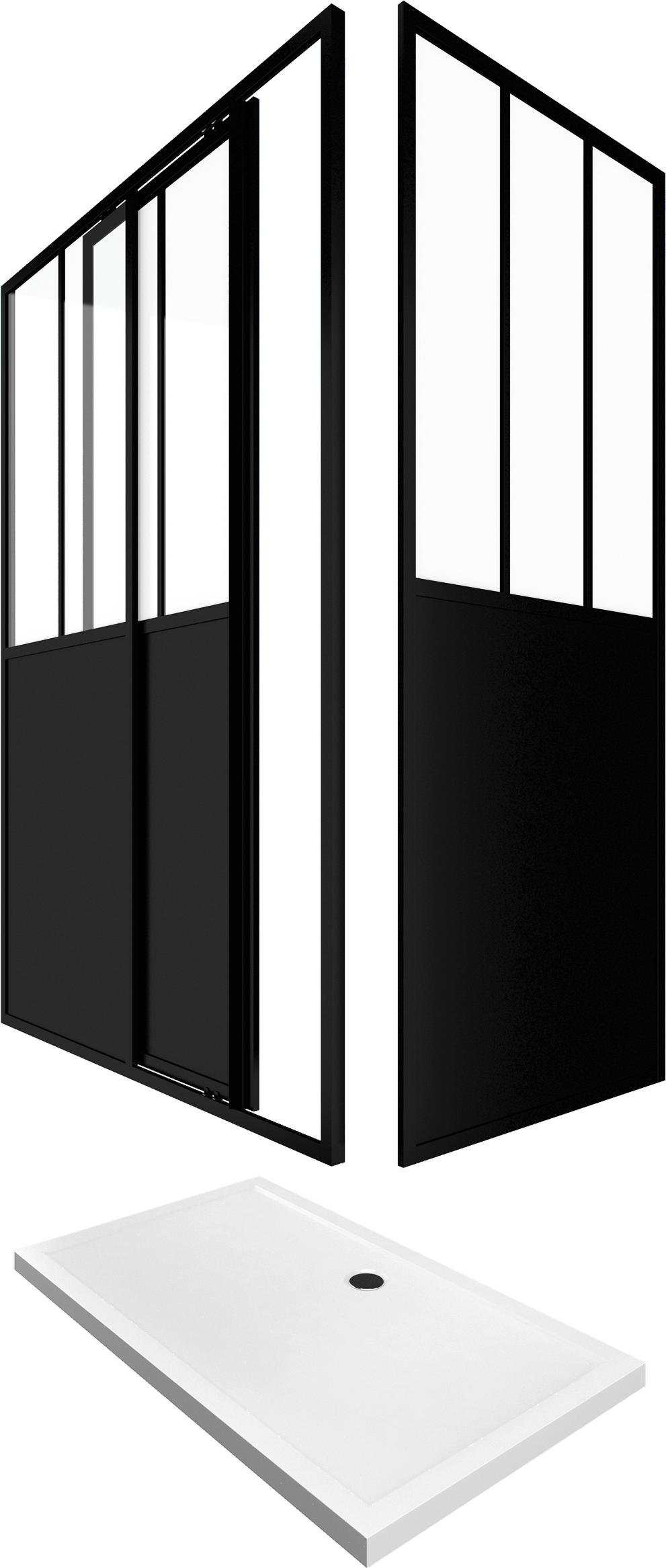 PACK PAROI PORTE DE DOUCHE + PAROI RETOUR + RECEVEUR A POSER - 120x80 COULISSANTE -CRUSH MOON 120x80