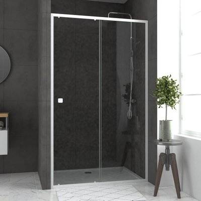 Pack porte de douche coulissante blanc 120x185cm + receveur 120x80 - WHITY SLIDE