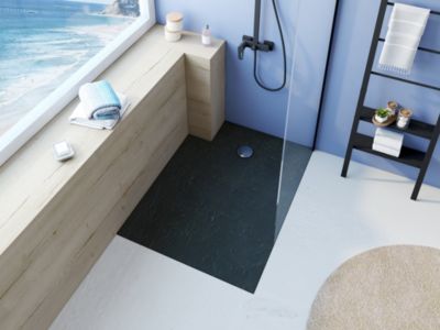 Receveur de douche acrylique noir mat texturé l.80 x L.120 cm, Allibert Bath & Design Mara