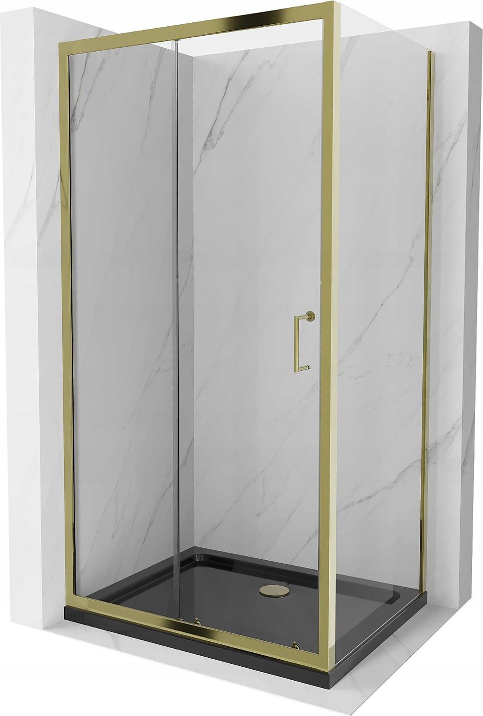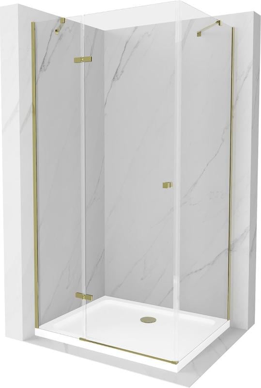 Mexen Roma cabine de douche avec porte battante 110 x 90 cm, Transparent, Or + receveur de douche Flat - 854-110-090-50-00-4010