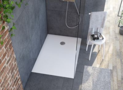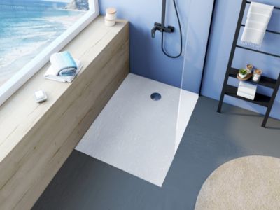 Receveur de douche acrylique blanc mat texturé l.80 x L.120 cm, Allibert Bath & Design Mara